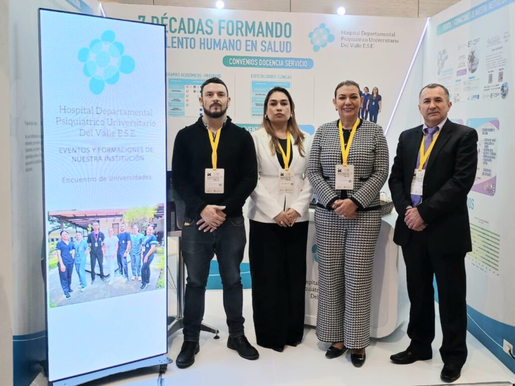 El Hospital Departamental Psiquiátrico Universitario del Valle E.S.E. participa activamente en el IX Foro Nacional de Acreditación en Salud, evento de gran relevancia que se lleva a cabo los días 5 y 6 de mayo en la ciudad de Bogotá. Este año, el foro tiene como eje central la formación integral del talento humano en salud, un tema clave para la mejora continua en la calidad de los servicios asistenciales en el país. Durante esta importante cita nacional, el Hospital comparte sus buenas prácticas y experiencias exitosas relacionadas con la transformación cultural organizacional y la formación del talento humano en salud, a través de un estand institucional que resalta el compromiso con la excelencia, la seguridad del paciente y la humanización del servicio. En representación del Hospital asisten la Dra. María Fernanda Burgos Castillo, gerente; el Dr. David Ernesto Martínez Pérez, subgerente científico; la enfermera Shirley Chilatra Osorio, referente de seguridad del paciente; y el Ing. Homero Rosero Montoya, profesional del área de calidad. La participación en espacios como este foro reafirma el compromiso del HDPUV E.S.E. con los procesos de acreditación en salud, la calidad institucional y el desarrollo de un talento humano altamente calificado, fortaleciendo su misión de brindar atención en salud mental con estándares superiores y enfoque humanizado.