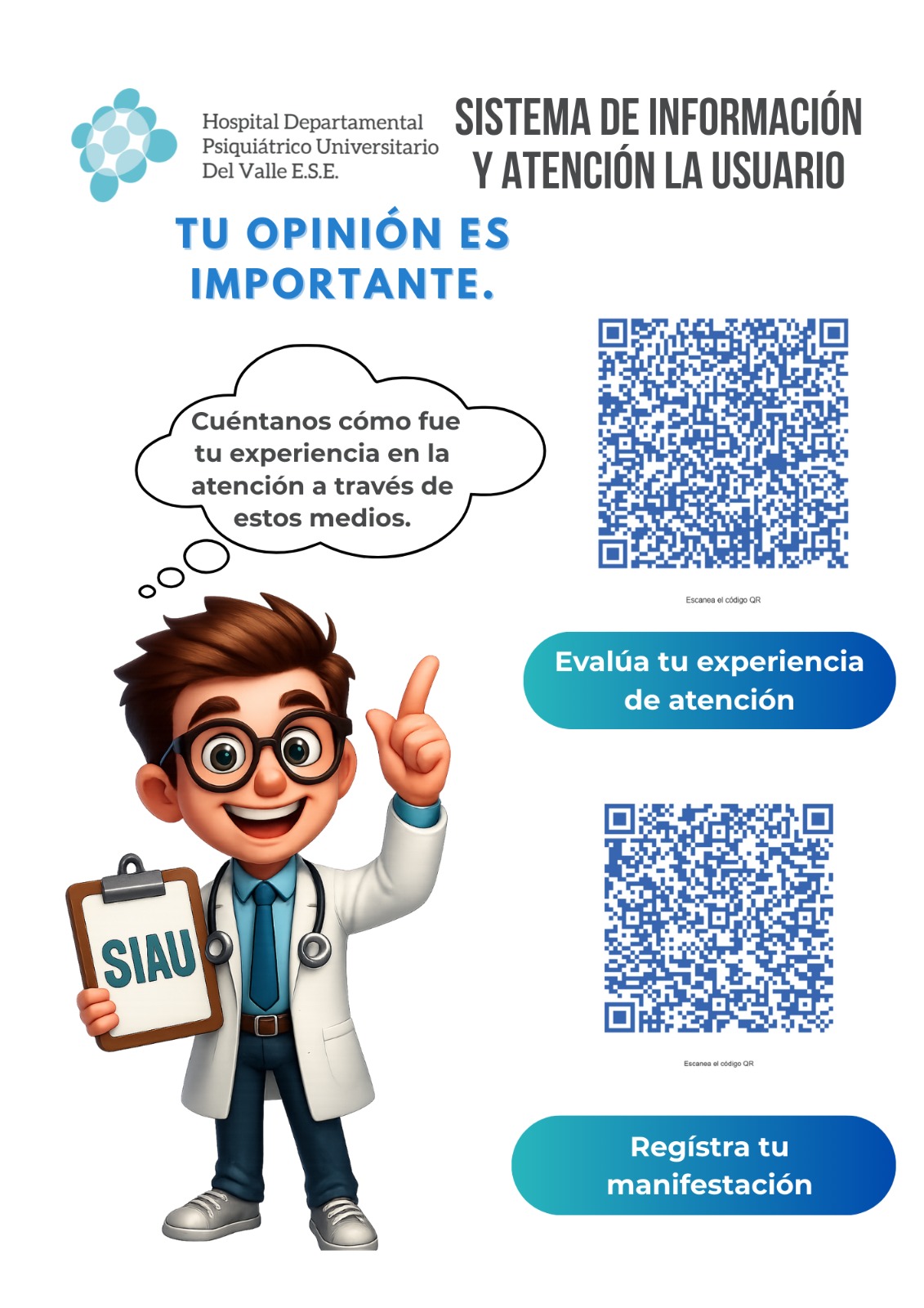 El Hospital Departamental Psiquiátrico Universitario del Valle te invita a registrarte en el Libro que se encuentra en el SIAU y a hacer parte de la Asociación de Usuarios del hospital.